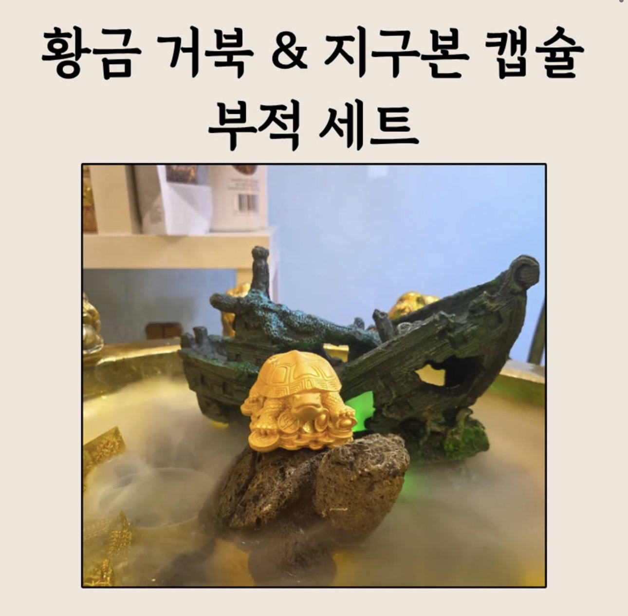 황금 거북과 지구본 캡슐 부적이 재물·안정·장수를 함께 끌어들이는 세트입니다. 💰🍀